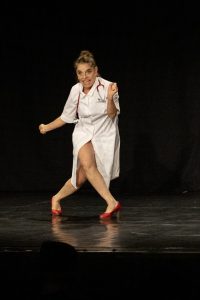 Juhász Kata verbalitást a színpadi mozgással elegyítő szólóiból álló trilógiájának második darabja, mely a Covid-járvány alatt született a Slippery-projekt keretében.