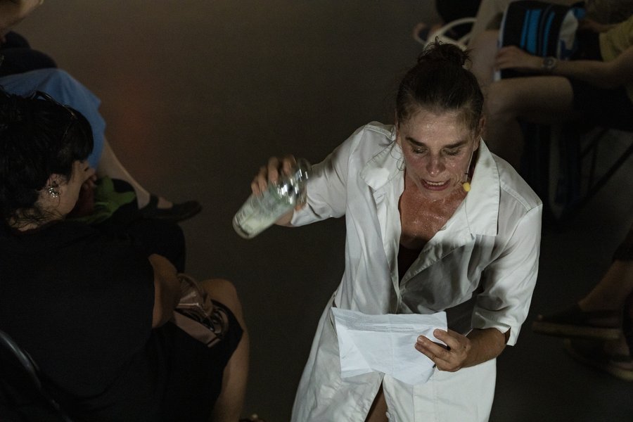 Juhász Kata verbalitást a színpadi mozgással elegyítő szólóiból álló trilógiájának második darabja, mely a Covid-járvány alatt született a Slippery-projekt keretében.